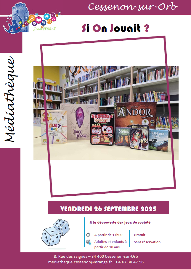 Envie de passer un bon moment en famille ou entre amis ? La bibliothèque vous invite à une session conviviale de jeux de société pour petits et grands ! 😄