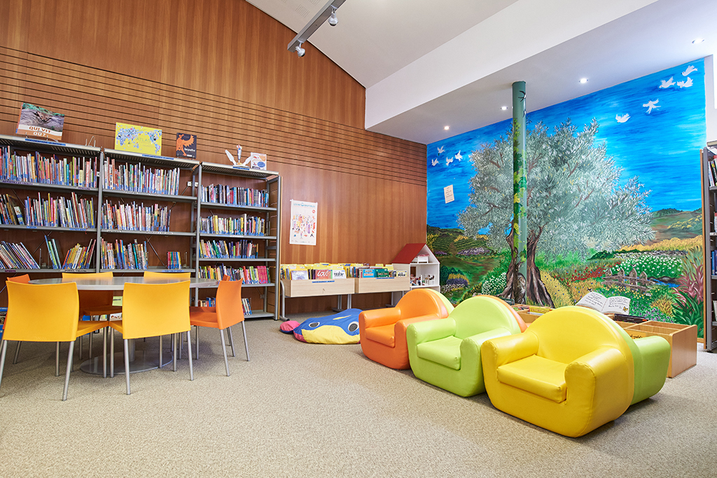 Elle se divise en 3 parties : la médiathèque, la galerie d’exposition et la salle informatique.